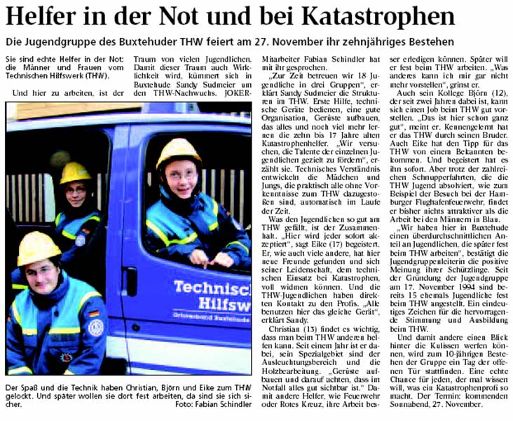 Helfer in der Not und bei Katastrophen - Buxtehuder Tageblatt vom 20.11.2004