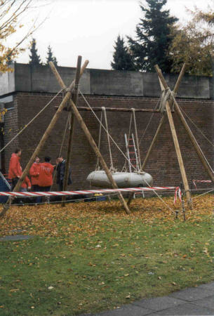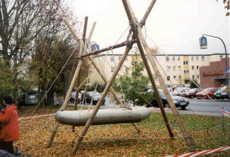 Herbst 1999 - Zum Martinsfest baute die Jugendgruppe ihre Schiffschaukel an der Kirche auf und die Kleinen hatten ihren Spaß.