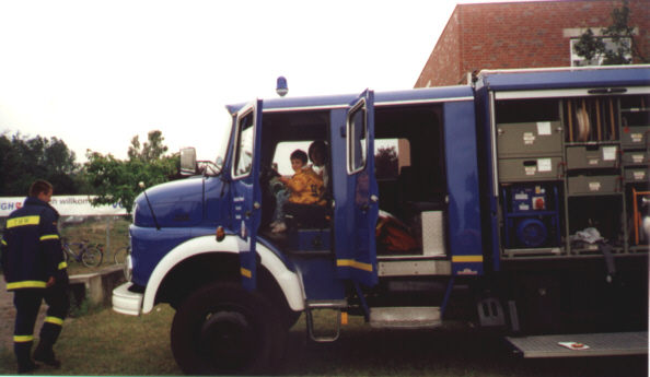Neben der Schiffschaukel wurde der GKW I der 1. Bergungsgruppe ausgestellt und der Kraftfahrer ließ sich sogar dazu erweichen seinen Platz zu räumen und kleine Fans mal Probe sitzen zu lassen.