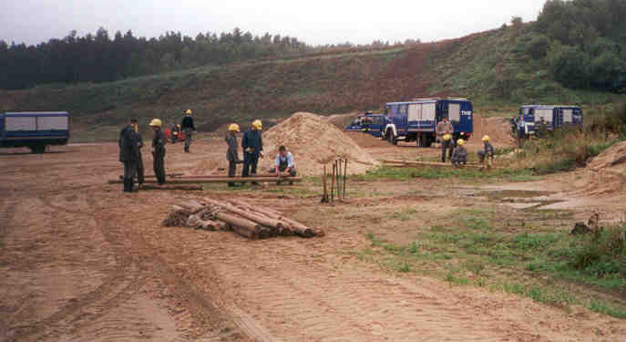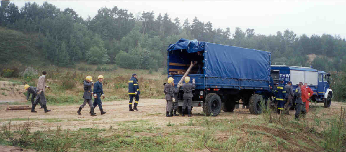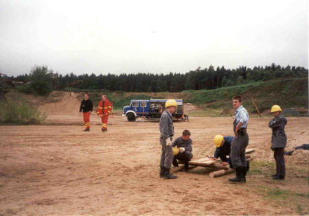 Sommer 2000 - Und wieder hat es die Jugendgruppe nach Lüchow-Dannenberg verschlagen, diesmal mit dem Technischen Zug und der Gelegenheit in einer Kiesgrube mal so richtig zu zeigen, was sie beim Stegbau können.
