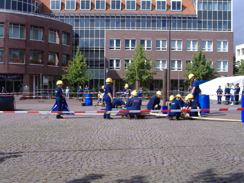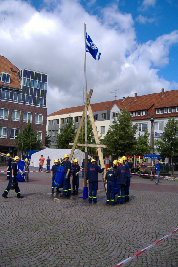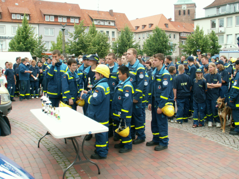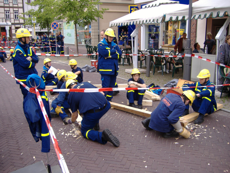 Am 17.7.2005 stand der Landesjugendwettkampf auf dem Plan. Unsere Wettkampfgruppe ging dieses Jahr das erste Mal bei einer solchen Veranstaltung an den Start. Die Begeisterung bei der Gruppe war riesig, als sie, ohne vorher je so ein Ding gesehen zu haben, in zweit schnellster, je gemessener Zeit, den so genannten Nicker als einzige Gruppe zum stehen bekamen.