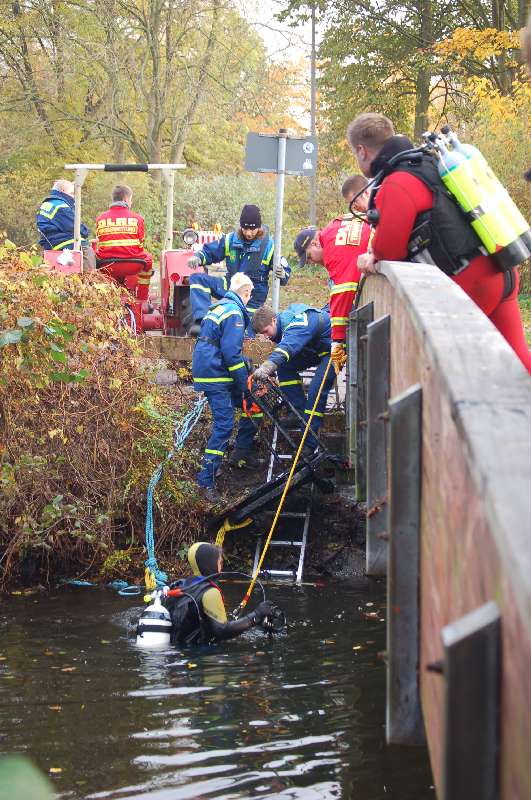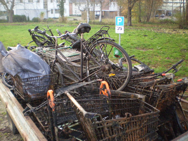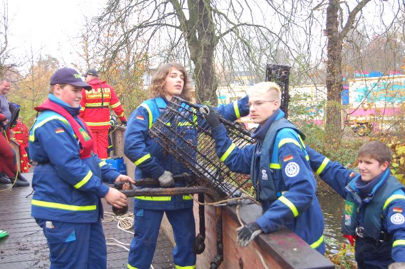 Taucher der DLRG Buxtehude und Horneburg stiegen ins Wasser und suchten nach allem, was da nicht hingehörte. Die Junghelfer des THW zogen die „Fundstücke“ dann gemeinsam mit weiteren DLRG-Helfern an Land. Darunter u.a. ein Verkehrsschild, ein schwere Stahlplatte und so manch andere Dinge die irgendjemand im Flusslauf versenkt hat. Den Löwenanteil am Müll in der Este nahmen aber eindeutig alte Fahrräder und unzählige Einkaufwagen ein. Manchmal sogar mehrere zusammengesteckte Einkaufswagen, die dann so schwer waren und so tief im Schlamm steckten, dass sie mit dem Traktor herausgezogen werden mussten. In nur wenigen Stunden kam ein ganzer Anhänger von Müll zusammen.
