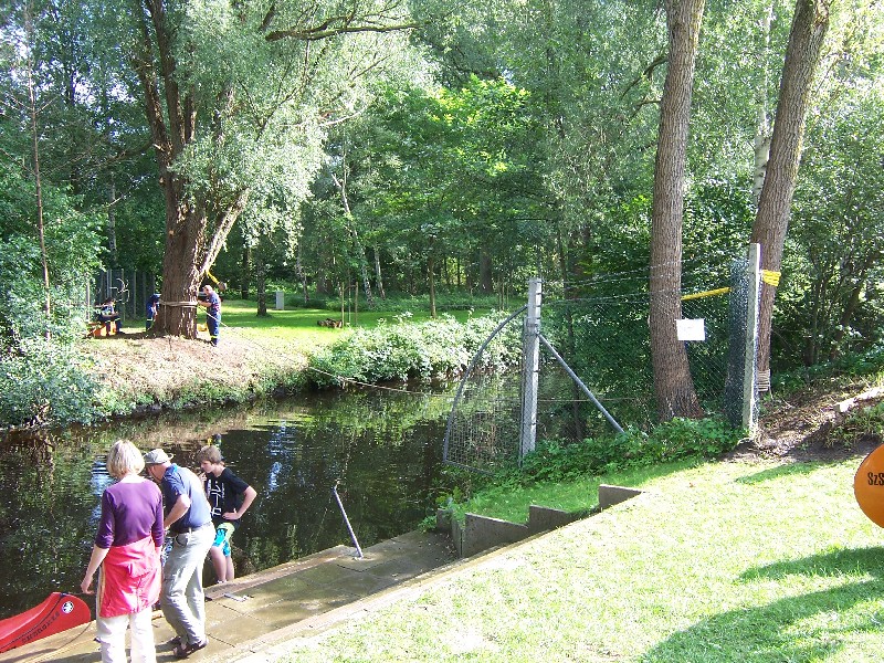 Zunächst waren wir sehr überrascht, als uns der Buxtehuder Kanuverein fragte, ob wir für deren Kinderfest eine „Brücke“ über die Este bauen könnten, die sie in ihre Spiele aufnehmen wollten. Eine „Brücke“ zu überqueren ist ja normalerweise kein Kunststück. Sekunden später kristallisierte sich daraus jedoch ein Kunststück heraus. Unter einer „Brücke“ stelle man sich beim Kanuverein ein Seil vor, welches von einem Ufer zum anderen reichen sollte. Erschwert wurde die Aufgabe noch durch den Zusatz, einen Luftballon zwischen den Zähnen zu transportieren.