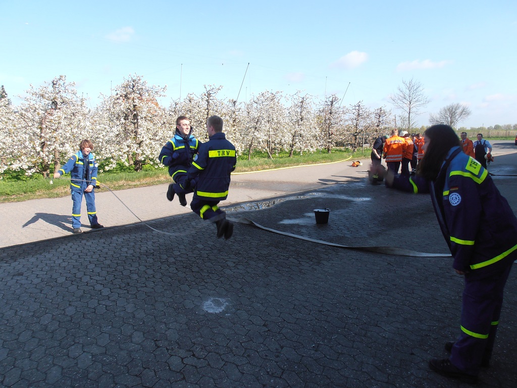 Früh, beinahe viel zu früh für die Kids, denn in den Fahrzeugen war es noch erstaunlich still, ging es am Sonntagmorgen raus ins Alte Land. Nachdem wir im vergangenen Jahr einen spannenden und spaßreichen Blütenmarsch miterleben durften, wollten wir auch in diesem Jahr mit dabei sein. In Jork angekommen wurde der Bollerwagen startklar gemacht und die Gruppe beim Start angemeldet. Mit der Laufkarte im Gepäck ging es bei sonnigem Wetter los. Wie wir es im Jahr zuvor kennengelernt hatten, wechselten sich bewegungsreiche mit Denkaufgaben ab. So mussten die Kids sich im Seilspringen beweisen und Wetterkarten erklären. Eines unserer Highlights war natürlich wieder die Bootsfahrt zur Insel. Hier wartete dann eine der Aufgaben, bei der die Geschicklichkeit gefragt war. Und tatsächlich gab es ein paar unter uns, die Erbsen mit Essstäbchen von A nach B transportieren konnten. Wieder auf dem Festland kam dann die Station unserer erwachsenen Jungs. Natürlich hatte die etwas mit Wasser zu tun und traf auch diesmal wieder den Geschmack der Kids. Ein kurzes Plaudern mit den "Großen" und schon war die Zielgerade in Sicht. Zurück am Start- und Endpunkt knurrte bei uns schon der Magen, so dass wir uns mächtig auf das anschließende Grillen bei unserem Junghelfer aus Jork freuten. Am Ende erreichten wir mit viel Humor und Spaß im Gepäck das gute Mittelfeld und sind uns sicher, im nächsten Jahr kommen wir wieder.