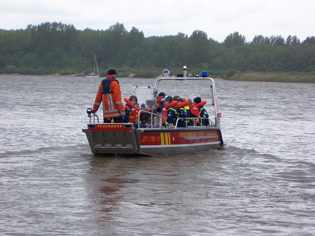 04.05.2014 - An diesem Sonntag ging es für uns zum 35. Blütenmarsch der Feuerwehren in Jork. Mit nicht ganz so viel Sonne am Himmel, aber einer Menge Tatendrang, freudiger Erwartung und Hunger auf neue Herausforderungen startete der Tag für uns um kurz nach 7 Uhr. Trotz der frühen Stunde fieberte die Gruppe auch in diesem Jahr auf die gestellten Aufgaben und natürlich die Überfahrt im Boot...
