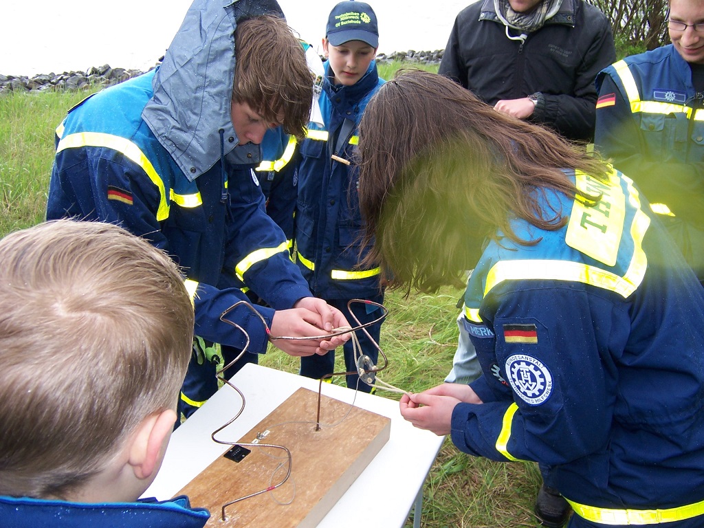 Zurück auf dem Festland kamen wir dann endlich zur Station unseres Ortsverbandes. Und wie kann es anders sein, auch die Jungs erfreuten uns mit einem "Wasserspiel". Hier haben wir dann bewiesen, dass nicht nur Teebeutel von uns das Fliegen lernen, sondern auch Schwämme getränkt in Wasser.