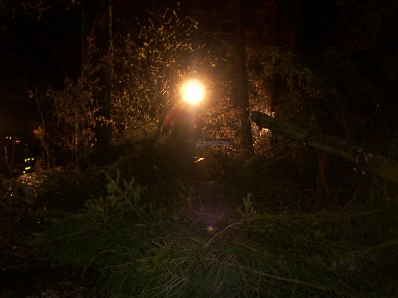 26.02.2002 - Am 26.02.02 waren die Ortsverbände Buxtehude und Kutenholz in Harsefeld im Einsatz. Dort waren mehrere Bäume umgestürzt, die beseitigt werden mußten. Insgesamt waren mit beiden OVs 41 Helfer im Einsatz. Die Bilder zeigen Kutenholz bei der Arbeit.