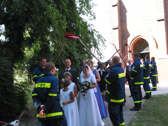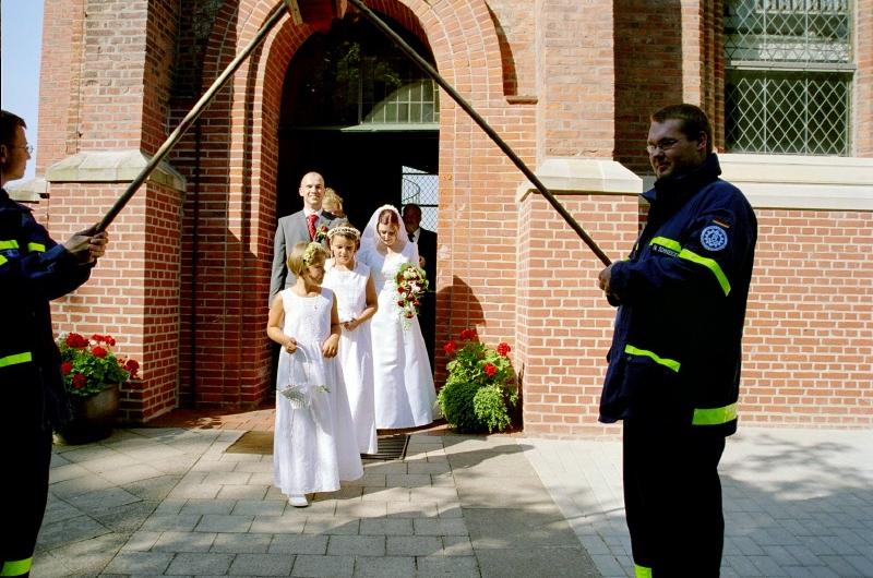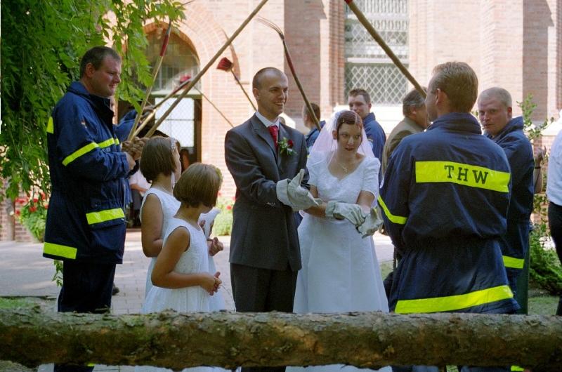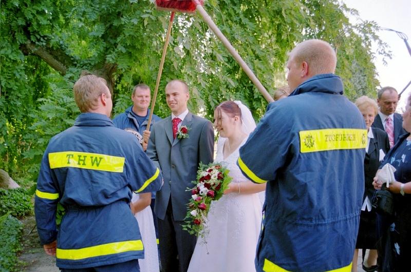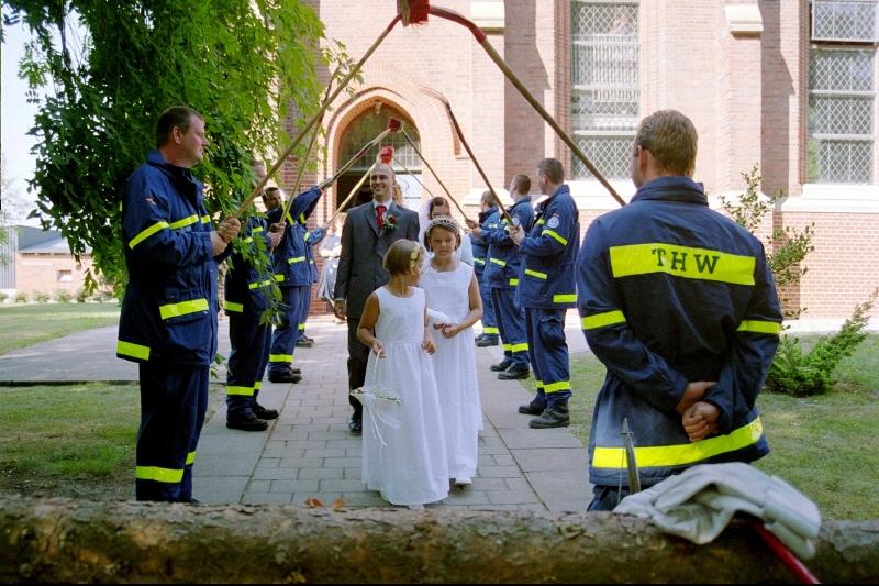 09.08.2003 - Bei der Hochzeit unseres Verwaltungshelfers Sebastian Becher standen einige Helfer Spalier.