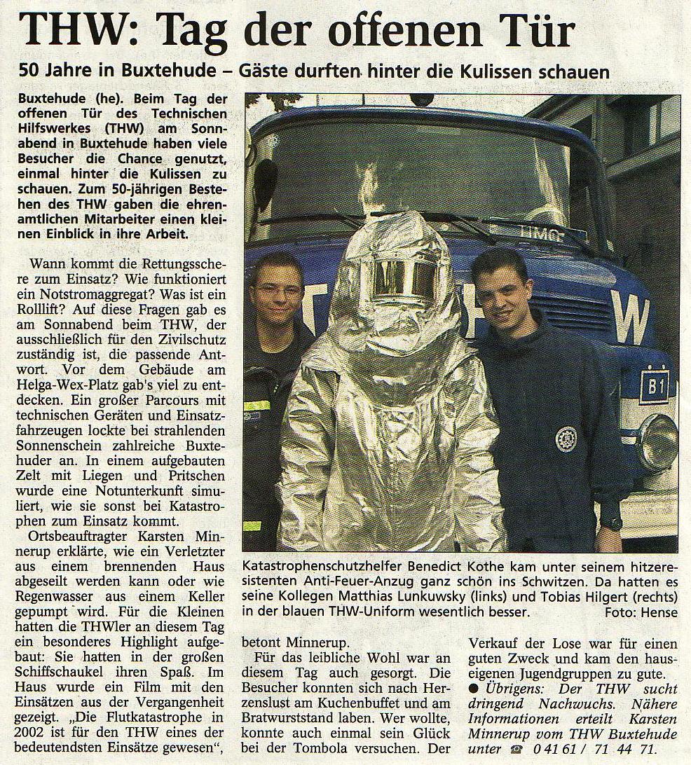 THW: Tag der offenen Tür - Buxtehuder Tageblatt vom 15.09.2003