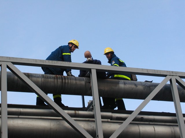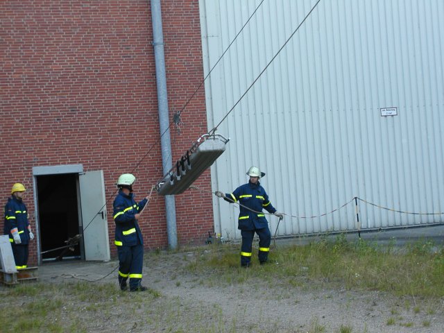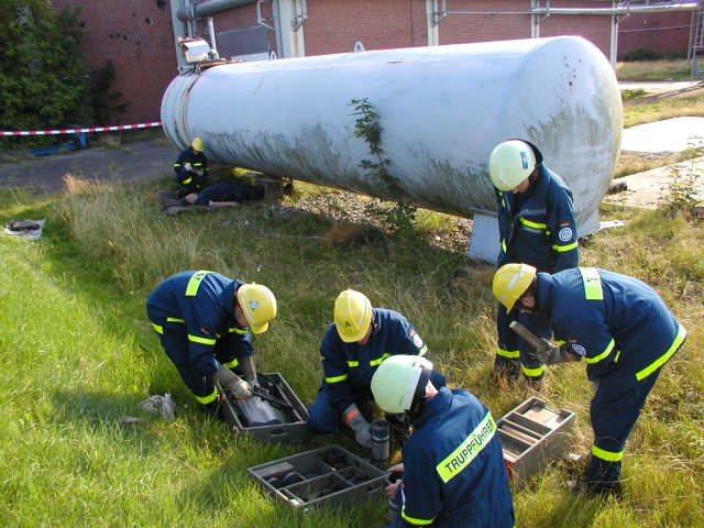 Im ersten Szenario ging es darum, Menschen aus einem brennenden Altenheim zu retten. Hierbei waren auch die Atemschutzgeräteträger des THW, gemeinsam mit der Feuerwehr, im Einsatz.Im zweiten Teil der Übung gab es zwei Aufgaben für die THW-Helfer. Einmal ging es darum eine schwer Verletzte Person von eine Rohrleitungsbrücke im stillgelegten Kraftwerk Schilling zu retten. Diese Aufgabe lösten die Helfer der 2. Bergungsgruppe mit Hilfe einer so genannten Seilbahn.Die erste Bergungsgruppe hatte derweil eine Verletzte Person, die unter einem Öltank eingeklemmt war zu retten. Mit Hilfe von Hebekissen gelang es auch ihnen, diese Aufgabe zu meistern.