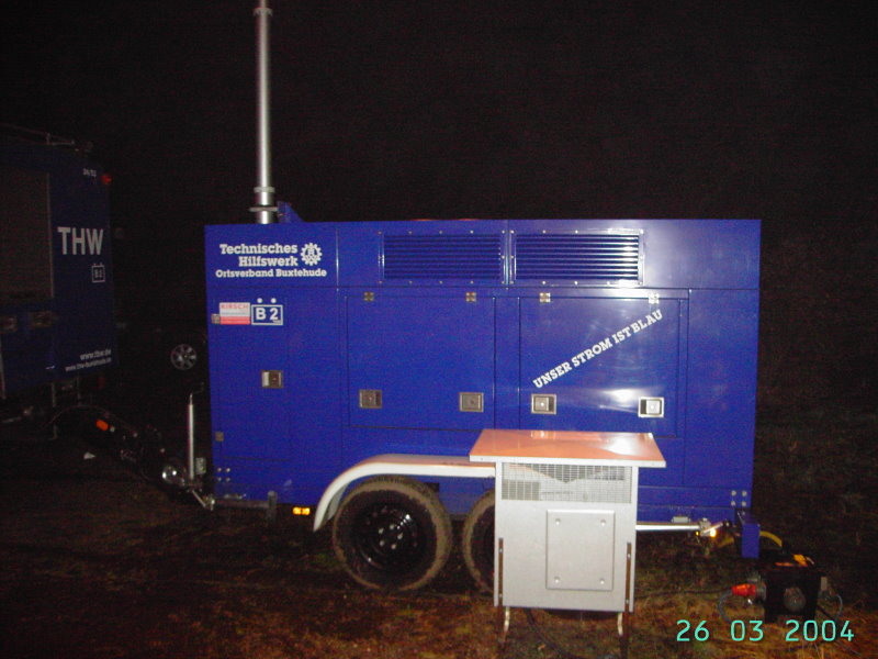 26.03.2005 - Am 26.03.2005 lieferten wir mit unserem 50kVA Aggregat Strom für das Osterfeuer der FW Ovelgönne. Das 5kVA aus den Vorjahren arbeitete immer an seiner Leistungsgrenze.