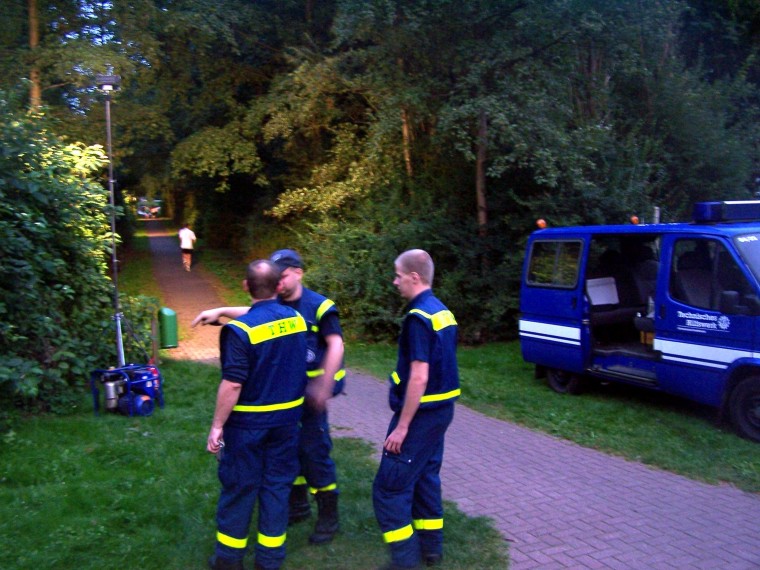 Damit die Läufer im Dunkeln nicht auf die Nase fallen, hat das THW-Buxtehude die dunklen Streckenabschnitte ausgeleuchtet. Drei verschiedenen Teilstücke der Strecke mussen beleuchtet werden. Im Einsatz waren 8 THW-Helfer.