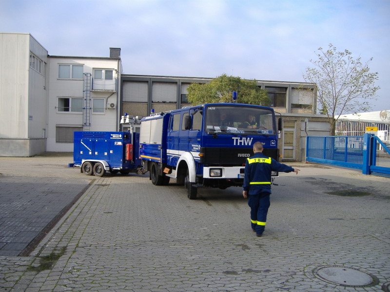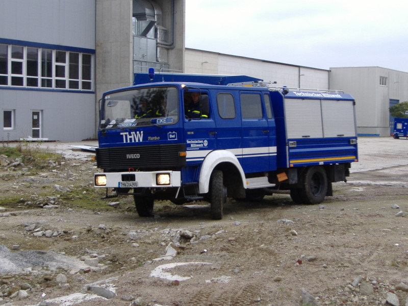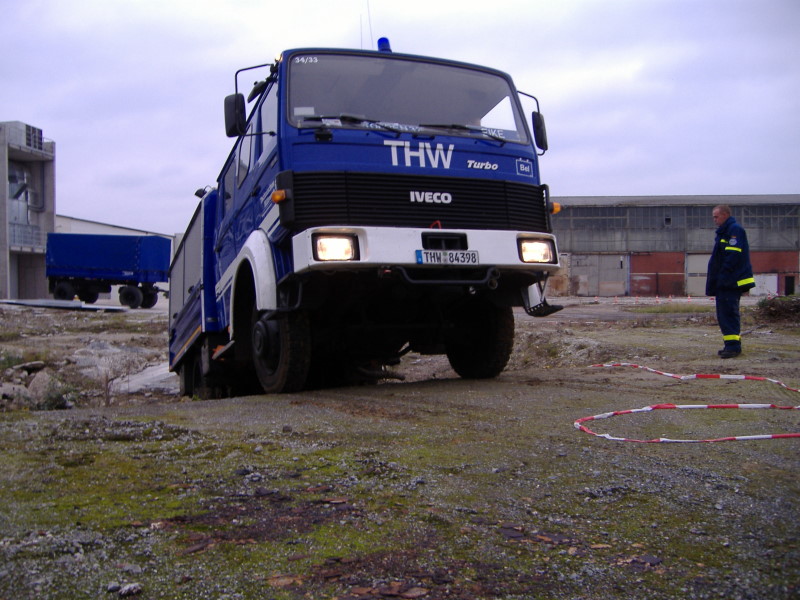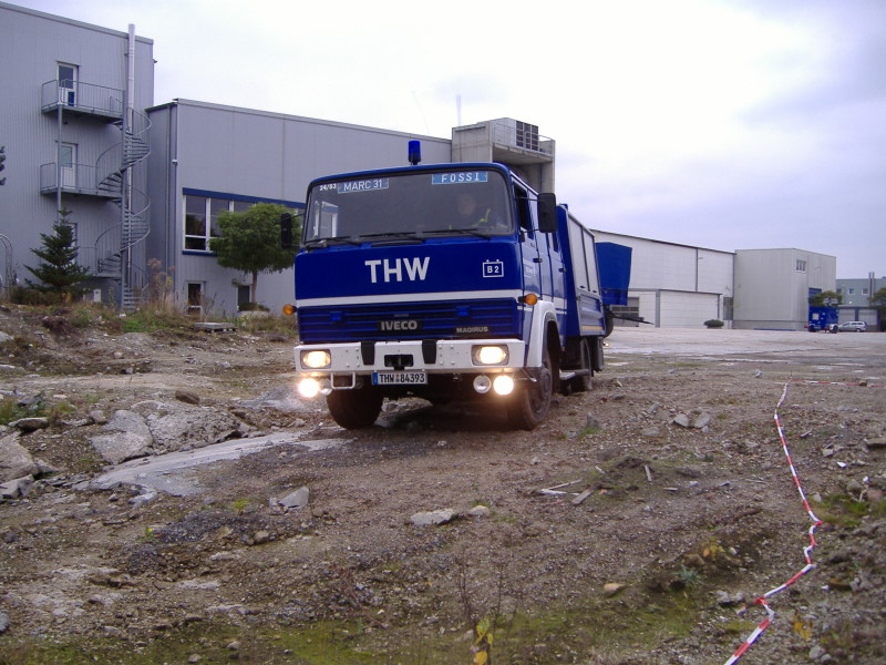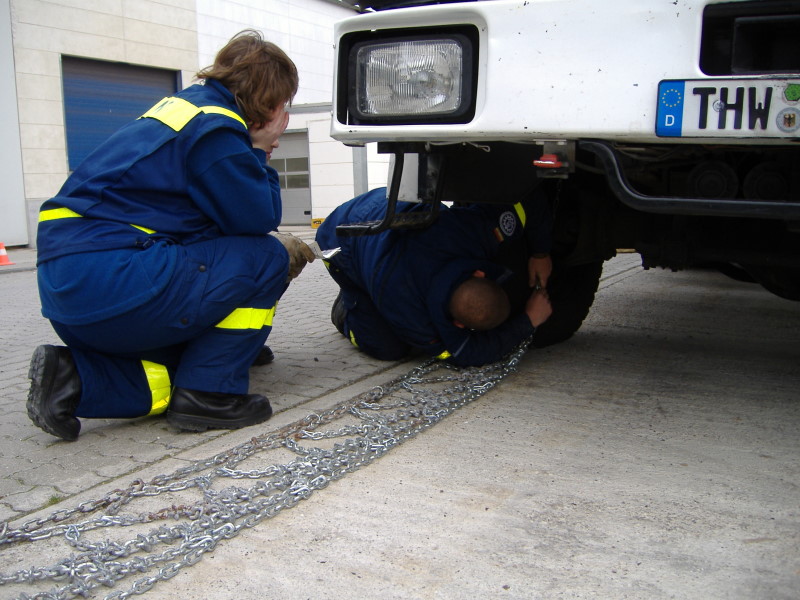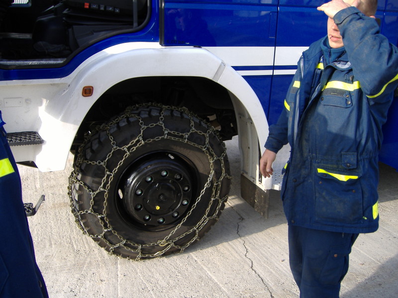 Ausgebildet wurde neben den theoretischen Teilen auch der praktische Teil, wie am vergangenen Samstag. Als Gelände wurde uns freundlicherweise ein altes Betonwerk zur Verfügung gestellt. Rückwärtsfahren mit Anhänger per Einweiser war das Hauptthema, sowie das Aufziehen von Schneeketten. Am Schluss der Veranstaltung konnte noch mal das Gelände mit dem LKW erkundet werden