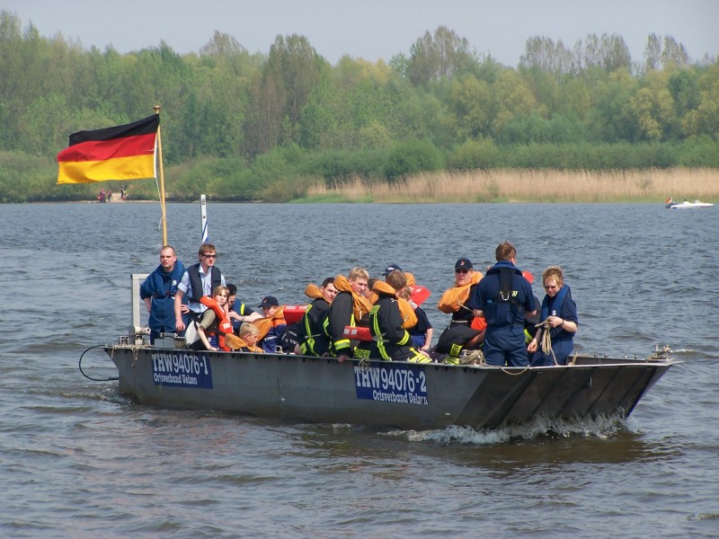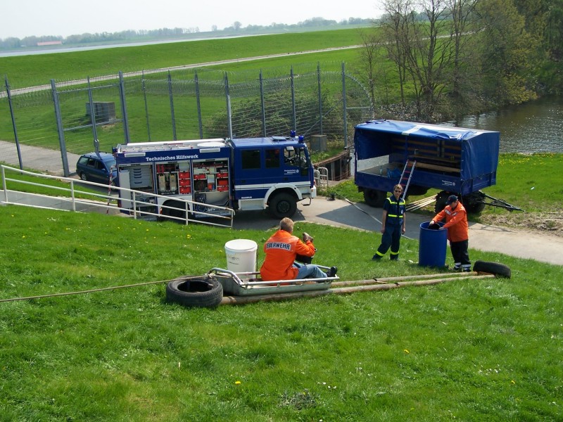 07.05.2006 - Auch im Jahr 2006 hat das THW die Jorker Feuerwehr beim Blütenmarsch unterstützt. Die Kameraden aus Uelzen sorgten mit Ihren Booten für eine reibungslose Überfahrt der Feuerwehr-Wettkampfgruppen aus ganz Deutschland zur Elbinsel Hanskalbsand. Unsere erste Bergungsgruppe stellte, wie schon in den vergangenen Jahren eine Wettkampfstation.