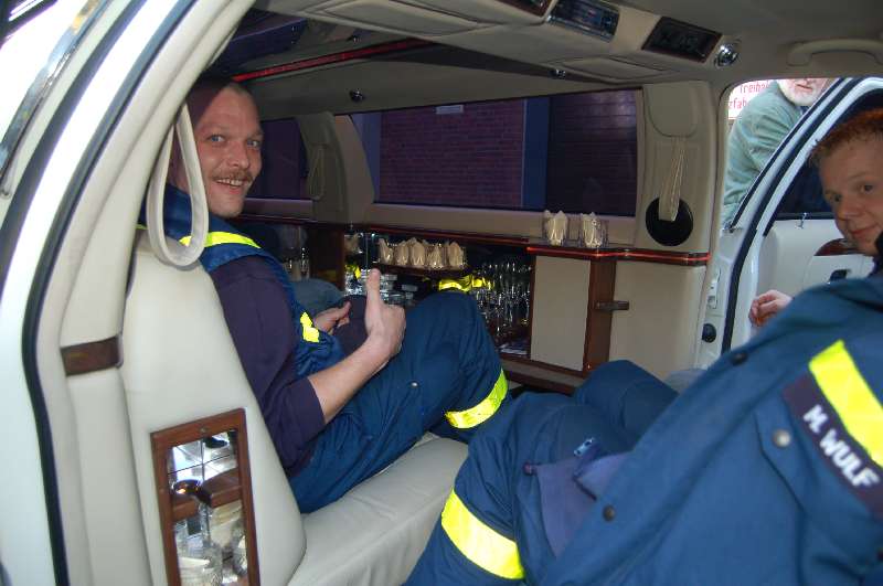 Doch nicht genug der Ungewöhnlichkeiten. Am Nachmittag stand plötzlich eine Stretch-Limousine vor der Tür. Während einer Veranstaltung vor ein paar Wochen hatten Kameraden das Ausstellungszelt des Verleihers gegen ein aufziehendes Unwetter gesichert. Zum Dank durften sie jetzt einen Ausflug in dem 9 Meter langen Vehikel unternehmen, mit Chauffeur und allem was dazu gehört.
