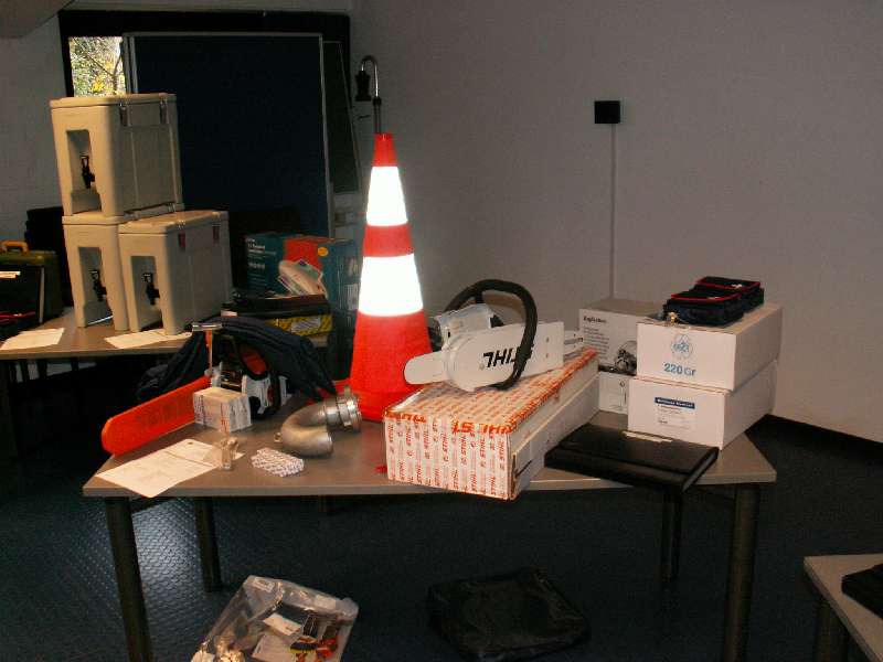 Neben dem großen Gerät gab es auch noch eine Menge kleinerer, aber durchaus wichtiger Ausrüstungsgegenstände, wie z.B. Kartenmaterial für alle Gruppen. Außerdem wurden für beide Bergungsgruppen neue Schutzhelme mit Spezialvisier und Gehörschutz beschafft. Für die B1 und die BEL gab es neue Handscheinwerfer und für die B2 neue Schnittschutz-Beinlinge. Die Zugführung bekam u.a. neues elektronisches Kartenmaterial für die Einsatzleitung und die Küche große Thermobehälter zur besseren Verpflegung der Helfer.