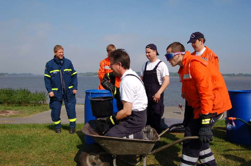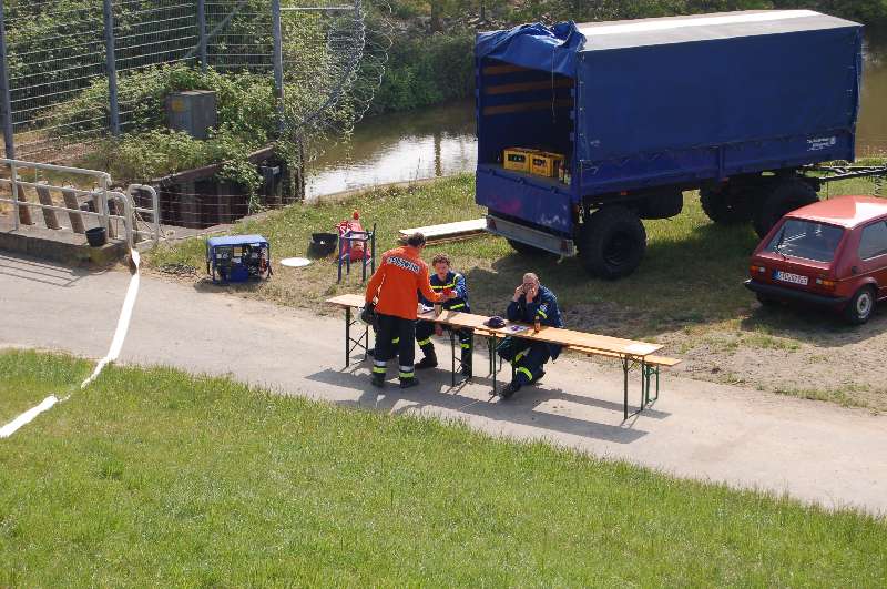 Die erste Bergungsgruppe des THW Ortsverbandes Buxtehude hat auch diesmal wieder eine Wettkampfstation aufgebaut. Wie schon in den vergangenen Jahren befand sich die Station direkt auf dem Elbdeich vor der Insel Hahnöfersand. Die Aufgabe, die sich die Kameraden für die Wettkampfgruppen ausgedacht hatten, hatte es diesmal in sich.