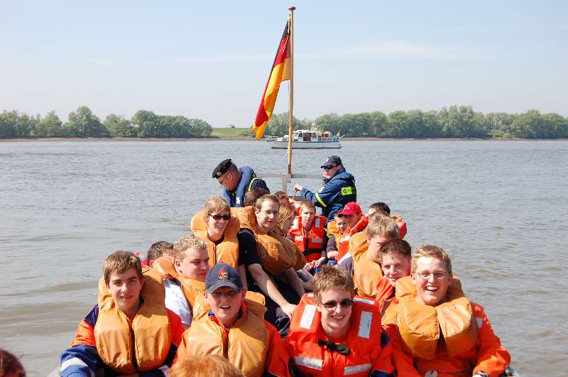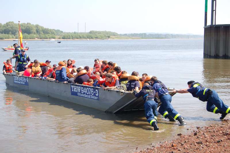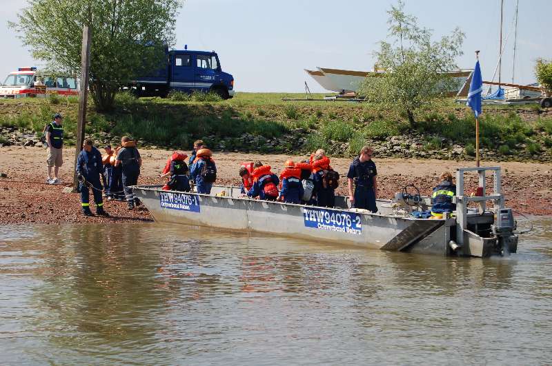 Aber das THW war nicht nur mit der Wettkampfstation der ersten Bergungsgruppe aus Buxtehude beim Blütenmarsch vertreten. Die Kameraden der Fachgruppe Wassergefahren vom Ortsverband Uelzen sorgten wieder für einen reibungslosen Fährdienst. Mit Ihren Booten transportierten sie die Wettkampfgruppen vom Borsteler Yachthafen zur Elbinsel Hanskalbsand und wieder zurück.