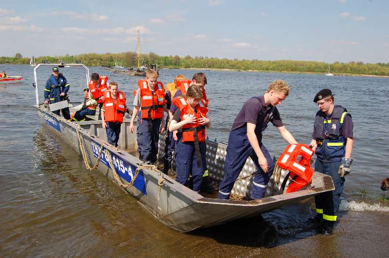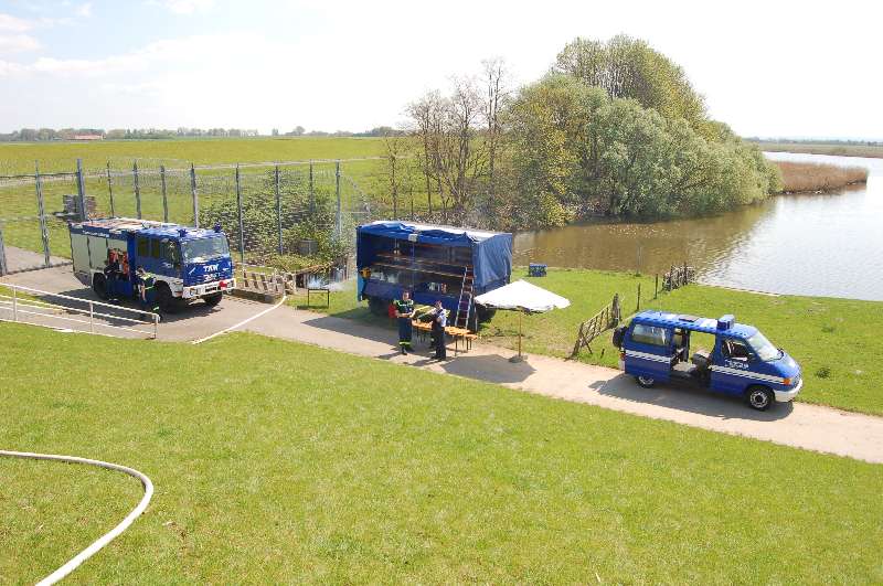 Eine nicht minder wichtige Aufgabe hatten die Kameraden des THW-Ortsverbandes Lüchow-Dannenberg. Sie setzten die Mannschaften mit ihren Booten zur Elbinsel Hanskalbsand über, wo diese dann Aufgaben an Stationen der Feuerwehr zu erfüllen hatten. Selbstverständlich brachten sie die Feuerwehrleute nach getaner Arbeit wieder heil zurück aufs Festland.
