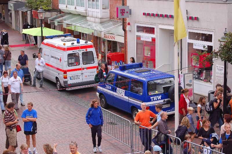 06.-07.09.2008 - Am vergangenen Wochenende (7. und 9. Sept. 2008) haben uns gleich mehrere Großveranstaltungen in Atem gehalten. Am Sonnabend fand in Buxtehude der alljährliche Abendlauf statt, in Stade war Trödelmarkt und in Hamburg liefen am Sonntag die Vattenfall Cyclassics. Doch nicht nur da, auch für die Vor- und Nachbereitung des Flohmarktes in Altkloster war die Hilfe des THW-Ortsverbandes gefragt.