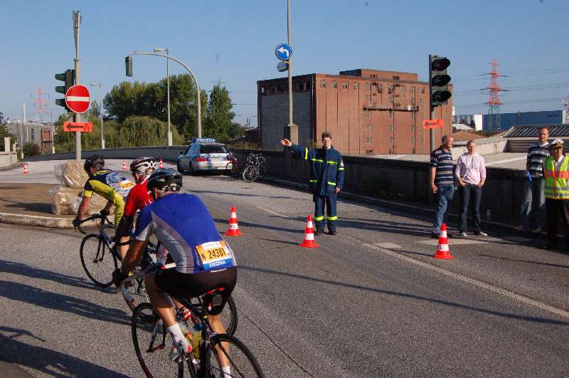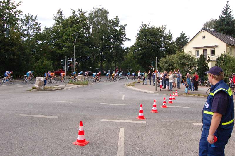Am Sonntagmorgen hieß es für die Helfer wieder früh aufstehen. Um 6:00 Uhr war Dienstbeginn. In Hamburg fanden die Vattenfall Cyclassics statt und um 7:30 Uhr musste die Strecke in Hamburg-Harburg für den Autoverkehr gesperrt werden. Nachdem das Feld der Profiradfahrer gegen Mittag Hamburg-Harburg passiert hatte, hieß es aufbrechen. Um ca. 12:30 Uhr ging es weiter nach Hamburg Bahrenfeld. Auch dort waren wir zur Streckensicherung eingeteilt. Erst gegen 17:00 Uhr waren wir zurück in Buxtehude.