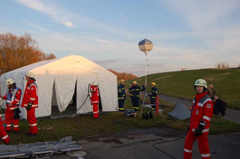 Insgesamt waren ca. 100 Helfer der drei Organisationen vor Ort. Auch die Jugendgruppe des THW-Ortsverbandes Buxtehude war dabei. Sie haben u.a. die Verletzten dargestellt.