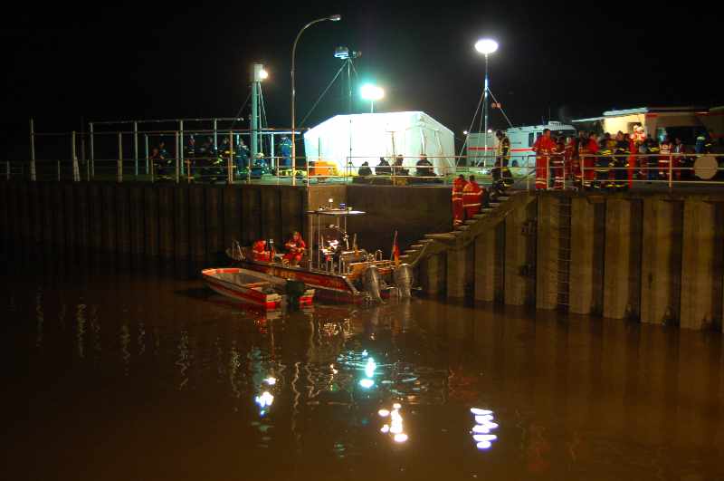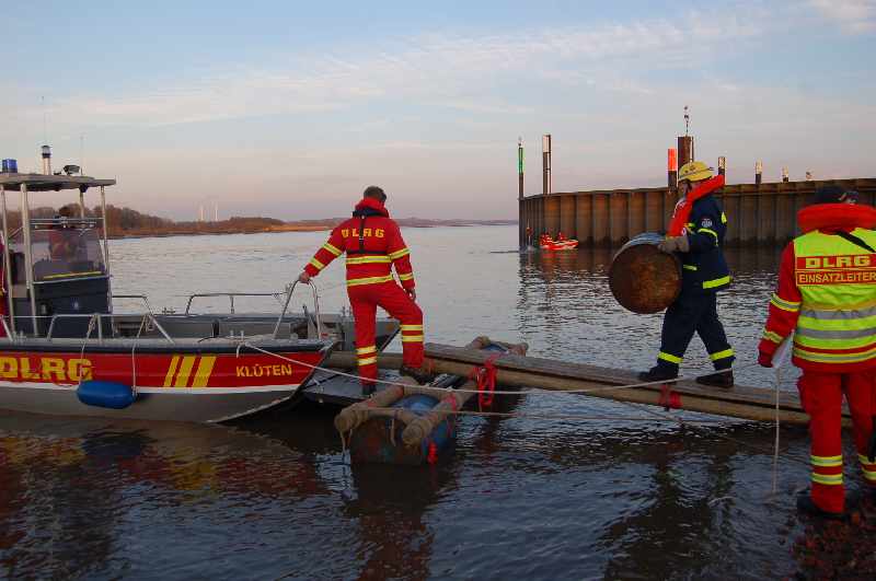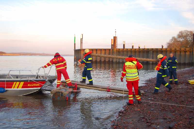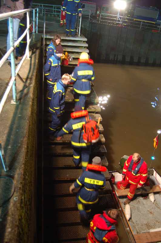 07.03.2009 - Ein Sturm hat an der Elbe gewütet. Im Hafen Neuenschleuse ist eine Yacht gesunken, auf der Insel Hanskalbsand sind mehrere Personen vermisst. Das war das Szenario einer gemeinsamen Einsatzübung von THW, DLRG und DRK aus Buxtehude.
