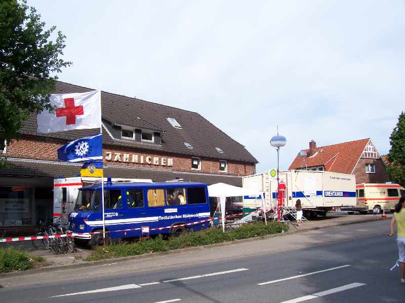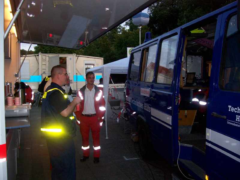 pfingstmarkt_09.jpg30.05.2009 - Auch beim diesjährigen Pfingstmarkt hat das Rote Kreuz aus Buxtehude mit der Unterstützung des THW-Ortsverbandes Buxtehude für die Hilfe bei Notfällen gesorgt. Während das DRK die medizinische Versorgung der Pfingstmarktbesucher sicherstellte, hat das THW an den drei Tage die Einsatzleitung unterstützt. Unser Einsatzleitwagen diente den Rettungskräften als Zentrale und „rollendes Büro“. Jeweils zwei THW-Helfer waren an den Tagen mit vor Ort, um z.B. die Verbindung mit der Polizei und der Leitstelle des Landkreises aufrecht zu erhalten.