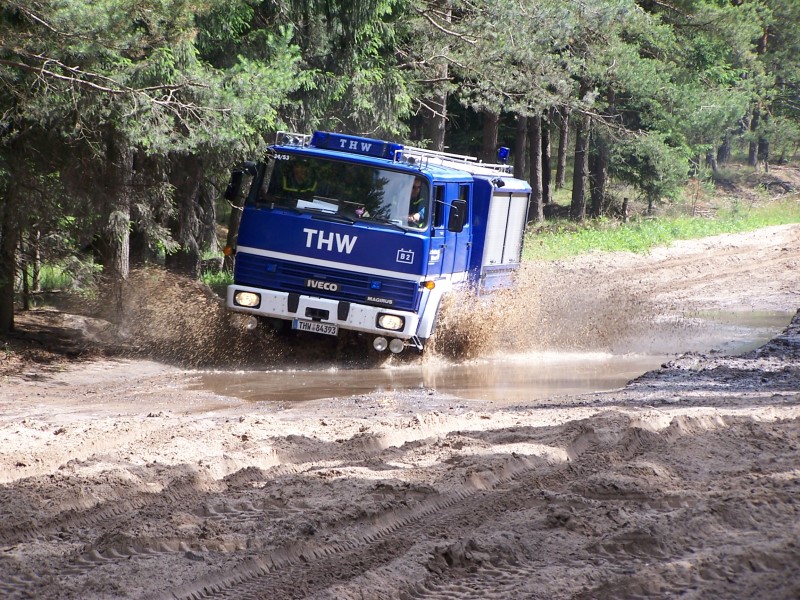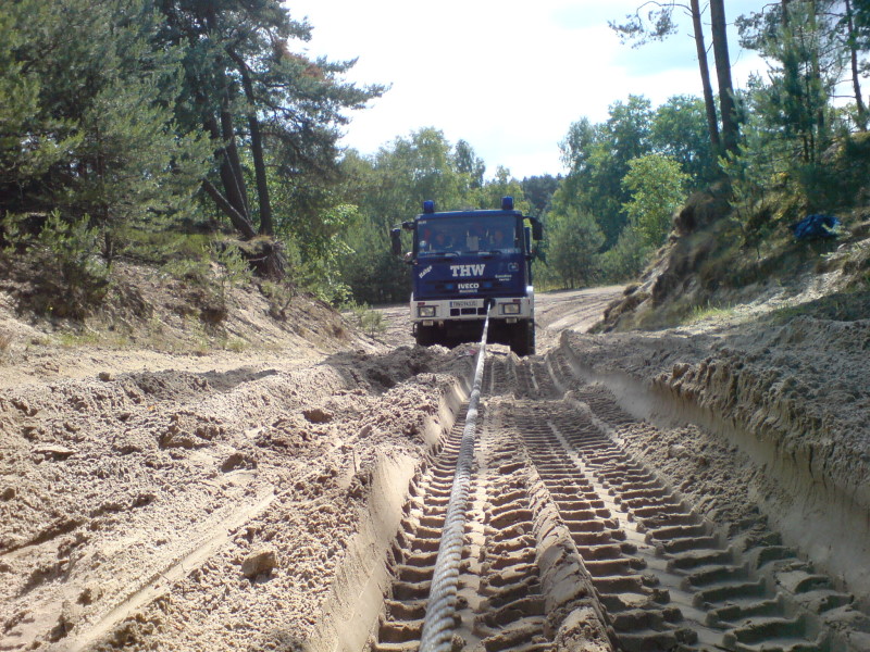 Die Ausbildung wurde in sechs Stationen aufgeteilt, an der jeder Kraftfahrer eine Aufgabe lösen, bzw. eine Ausbildung auf bestimmte Bereiche bekommen hat, wie z.B. Ausbildung an der Seilwinde, Abschleppen, Anhängerbetrieb sowie auch immer wieder das Fahren im Gelände. Insgesamt nahmen 15 Kraftfahrer teil mit 7 Fahrzeugen. Die Ausbildung kam bei allen Beteiligten sehr gut an, so daß so eine Veranstaltung auch beim nächsten Mal mit mehr Kraftfahrern aus dem gesamten Geschäftsführerbereich durchgeführt werden kann.