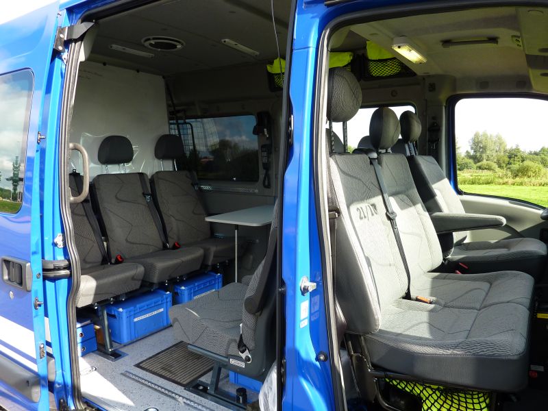 Das Fahrzeug wurde zusätzlich von der Firma Mosolf speziell auf die Wünsche des THW´s umgebaut. Unter anderem bekam es dort die Sondersignalanlage auf dem Dach sowie Frontblitzer und Martinhorn, modernste Funktechnik mit FMS Hörern, mehrere Zurrpunkte im Innenraum zum sicheren verlasten der Ausrüstung, einen Tisch und eine Magnettafel zum Führen von Einsätzen, eine Webasto Standheizung und diverse Steckdosen und Leuchtmittel montiert, die das Arbeiten im Einsatzfall erheblich leichter machen. Das Fahrzeug wurde mitlerweile von den Kameradinnen und Kameraden des Zugtrupps mit dem Arbeitsmaterial aus dem alten ELW ausgestattet und ist somit voll einsatzfähig. Wir wünschen der Gruppe viel Freude mit ihrem neuen Fahrzeug und dass es Sie immer gesund aus dem Einsatz nach Hause bringt.