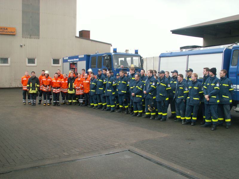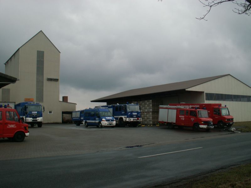 20.03.2010 – Dichter Rauch dringt aus Fenstern und Türen des Getreidesilos der Firma HANSA Landhandel. Auf dem Hof hört man immer wieder Klopfgeräusche und Hilfe rufe aus dem Silo. Nach einer Mehlstaubexplosion werden noch mehrere Mitarbeiter auf vier Etagen vermisst. Da die Feuerwehren der Samtgemeinde Selsingen nicht genügend Atemschutzgeräteträger (AGT) zur Verfügung hatten wurde das Technische Hilfswerk hinzu alarmiert.