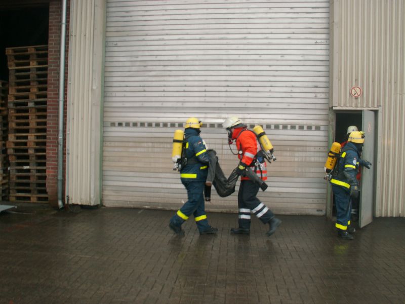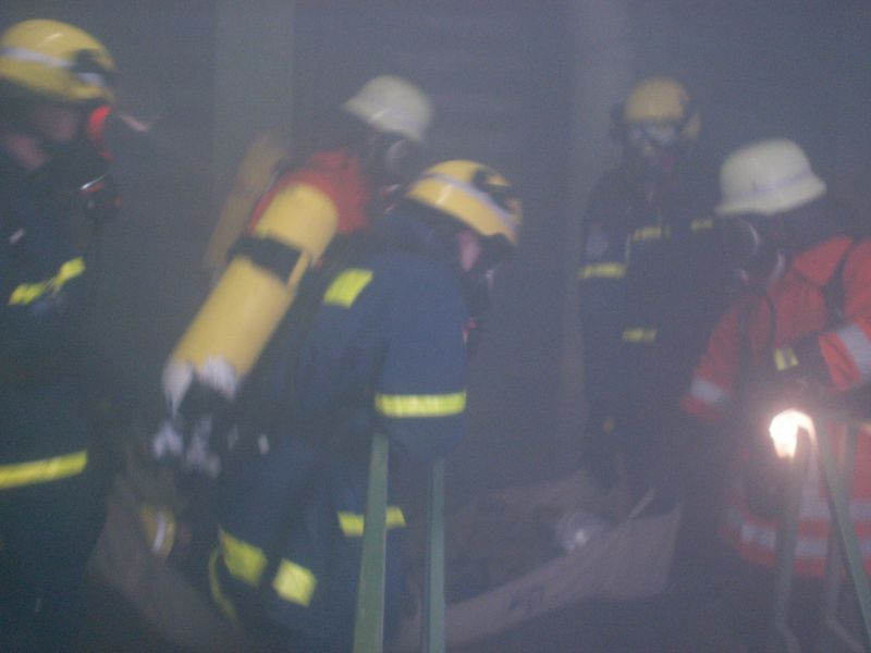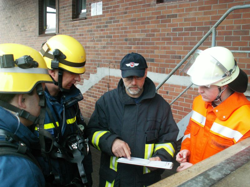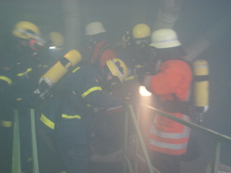 Aus den Ortsverbänden Stelle-Winsen, Stade, Rotenburg und Buxtehude waren insgesamt 19 Helfer unter schwerem Atemschutz im Einsatz. Zusammen mit einem Feuerwehrmann und zwei THW Helfern wurden Erkundungstrupps gebildet, um im Inneren des Silos nach verletzten Personen zu suchen. Erschwert wurde die Übung durch die sehr starke Rauchentwicklung. Dadurch konnten die Helfer sich nur tastend und sehr langsam mit höchster Konzentration durch das Gebäude bewegen. Durch die Übungsleitung wurde auch immer wieder für Überraschungen gesorgt. Zum Beispiel wurden einzelne Helfer bestimmt, die sich während der Übung verletzten und von den Kameraden ebenfalls zur Verletztensammelstelle gebracht werden mussten. Nach zwei Stunden wurde die Übung mit der Rettung der letzten Person erfolgreich beendet. Ausgearbeitet wurde die Übung vom Kreisausbildungsbeauftragten des Landkreises Rotenburg Johann Borchers, der vom Sachbearbeiter Ausbildung der THW-Geschäftsstelle Buxtehude Horst Schomaker unterstützt wurde. In der anschließenden Abschlussbesprechung wurde ein positives Resümee gezogen, da die Zusammenarbeit in dieser Form zwischen der Feuerwehr und dem Technischen Hilfswerk zum ersten Mal statt fand.