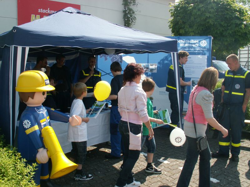 29.5.2010 – Bei schönstem Sonnenwetter veranstalteten die Toom Baumärkte und Plaza entlang der Konrad-Adenauer Allee ihr erstes Kinderfest. Neben Ponyreiten, Hüpfburgen und Torwandschießen stellten sich auch Organisationen wie das Deutsche Rotes Kreuz vor. Auch das Technische Hilfswerk war mit einem Stand und mehreren Aktionen der Jugendgruppe vor Ort.