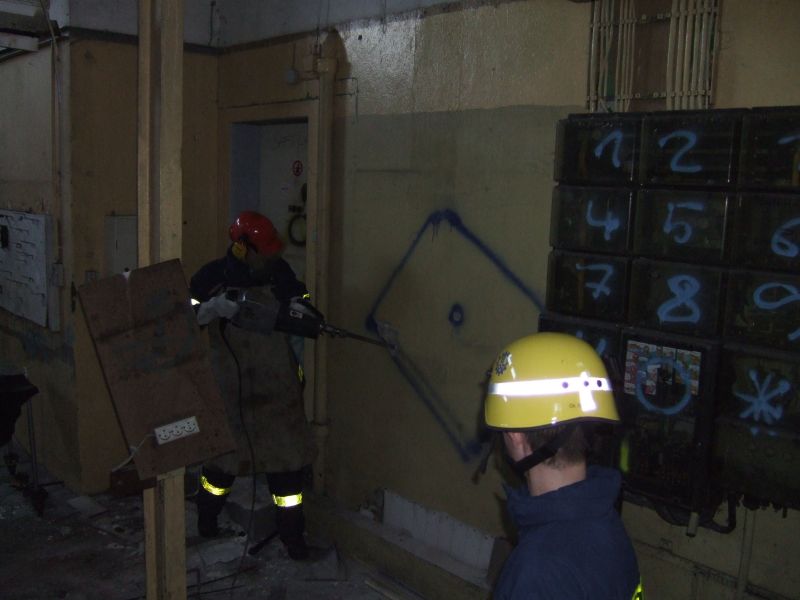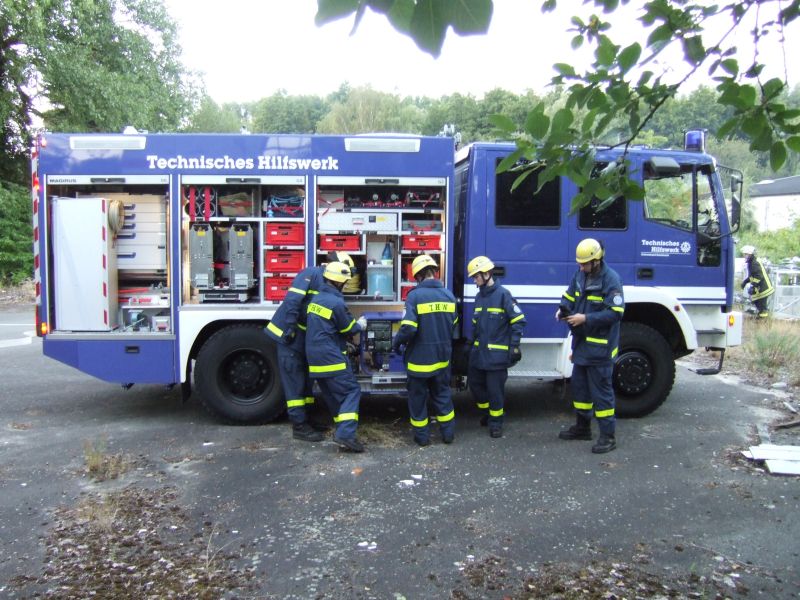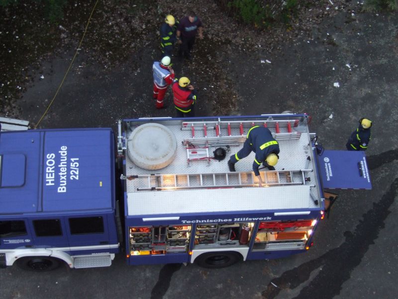 Auf dem Gelände war ein Bürogebäude teilweise eingestürzt. Im Inneren wurden noch mehrere Person vermisst, jedoch waren sämtliche Zugänge durch Dachtrümmer versperrt. So mussten die Helfer einen Wanddurchbruch mittels Bohrhammer vornehmen um die verletzte Person zu retten. Währenddessen löschte der Zug 1 der Feuerwehr Buxtehude kleinere Brände und befreite zwei verletzte Personen aus einem Fahrzeug, welches unter einem umgestürzten Baum eingeklemmt war. Die Bereitschaft des Deutschen Roten Kreuzes übernahm die geretteten Personen von Feuerwehr und Technischen Hilfswerk und versorgte diese, sodass sie für die weitere fahrt ins ElbeKlinikum Buxtehude transportfähig waren. Der Verpflegungstrupp stellte Getränke und bereitete eine Kleinigkeit zu essen vor zur Stärkung der rund 60 Einsatzkräfte. Insgesamt dauerte die Übung ca. zwei Stunden. Die Übung diente zur Verbesserung der Zusammenarbeit von Feuerwehr, Deutschen Roten Kreuz und Technischen Hilfswerk an einer größeren Schadenslagen.