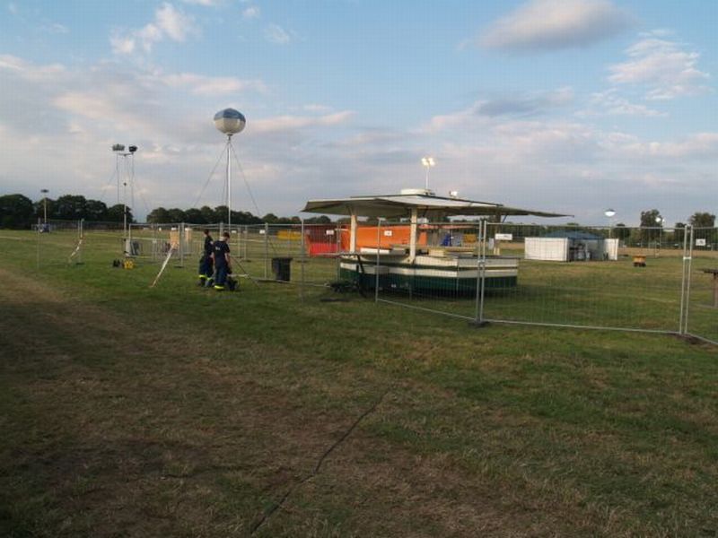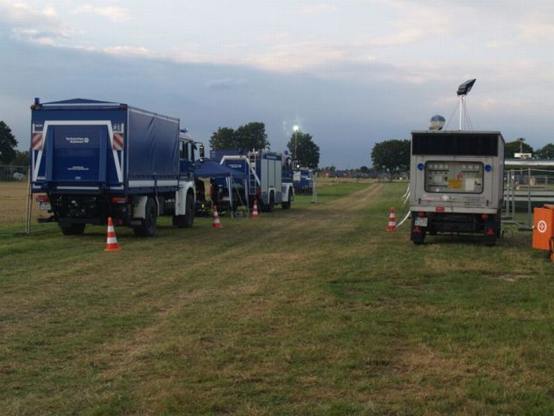 Am Samstag gegen 14:00 Uhr brachen die ersten Helfer auf zum Veranstaltungsgelände in Elstorf. Vor Ort wurden der Lichtmast der Fachgruppe Beleuchtung, das 50 kVA Aggregat mit Lichtmast der 2. Bergungsgruppe sowie ein geliehenes 100 kVA Aggregat in Stellung gebracht und ausgerichtet. Nach und nach wurden über das Gelände 17 Stative mit verschiedenen Beleuchtungsmitteln wie POWERMOON®, 1000 Watt und HQI – Scheinwerfer verteilt. Mehrere Energieverteiler und ca. 600 Meter Stromkabel mussten verlegt werden damit die Leuchtmittel den Platz erhellten. Zusätzlich wurde ein kleines Stück der Bundesstrasse 3 mit Powermoons und einem 8 kVA Aggregat beleuchtet damit die Besucher sicher zum und vom Gelände der Beachparty kommen konnten. In den frühen Morgenstunden wurde auf Anfrage der Polizei und des Rettungsdienstes mit der Fahrzeugbeleuchtung des MzKWs angrenzende Ackerflächen und Teile des Weges zur B3 ausgeleuchtet. Gegen 7:30 Uhr war der Einsatz mit der Wiederherstellung der Einsatzbereitschaft in der Unterkunft beendet.
