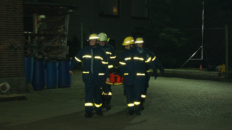 Vor Ort bot sich den Helferinnen und Helfer ein Bild der Zerstörung. Durch die Wucht der Explosion wurde Bäume auf dem Hof umgeknickt, aus dem Haus drangen dicke Rauchschwaden und eine verwirrte Person irrte Ziellos über den Hof. Mit Motorsägen räumten sich die Einsatzkräfte den Weg zum Haus frei. Eine Person wurde dabei unter den Bäumen hervorgeholt. Im Haus mussten mehrere Wanddurchbrüche gemacht, sowie das Dach teilweise geöffnet werden, um die verletzten Personen zu retten. Über eine Leiterrutsche wurden die Personen zu Boden gefördert und an den Rettungsdienst des DRKs übergeben. Das DRK hatte während der Bergung einen Behandlungsplatz aufgebaut, wo die verletzten Personen versorgt und für den Weitertransport ins Krankenhaus vorbereitet wurden. Ebenfalls war die Verpflegungsgruppe des DRKs vor Ort und versorgte die Einsatzkräfte mit heißer Suppe und Getränken. Die THW Fachgruppe Beleuchtung leuchtete die gesamte Einsatzstelle mit Hilfe des Lichtmastanhänger und diversen Leuchtmitteln (POWERMOON®, HQI Scheinwerfer) während der Bergung und Rettung der Verletzten großflächig aus.