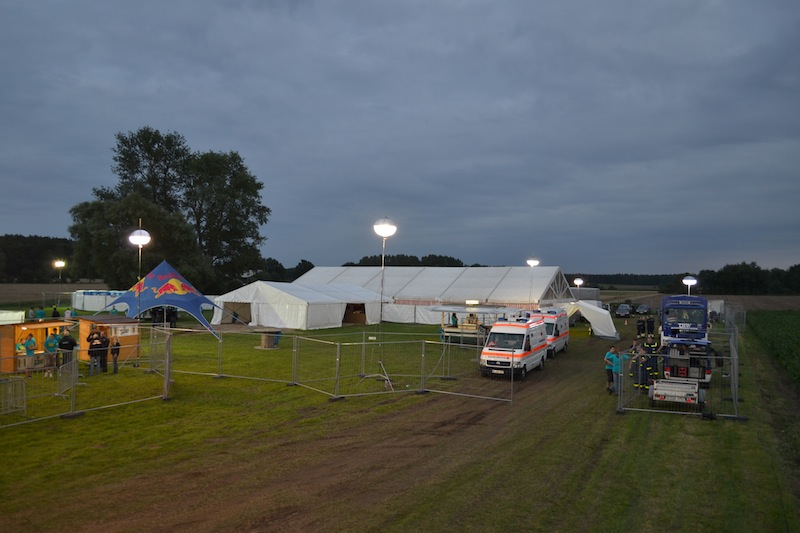 Gemeinsam mit dem Deutschen Roten Kreuz, der Feuerwehr und der Polizei wurden die Sicherheitsauflagen des Ordnungsamtes für solche Großveranstaltungen erfüllt. Die Fachgruppe stellte hierfür die Materialien, um eine ausreichende Beleuchtung auf dem gesamten Veranstaltungsgelände, sowie für einen Taxistand und auf den Zufahrtswegen zu gewährleisten. Über 800 Meter Kabel stellten die Verbindungen, zwischen den POWERMOON®, HQI - und 1000 Watt Scheinwerfer mit dem 50 kVA Aggregat, dem Lichtmastanhänger sowie dem 100 kVA Aggregat aus Stade, her. Insgesamt waren 11 Helfer von Samstagnachmittag bis in dem frühen Sonntagmorgen im Einsatz.