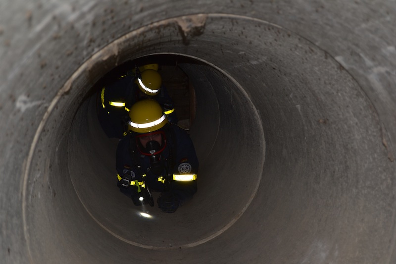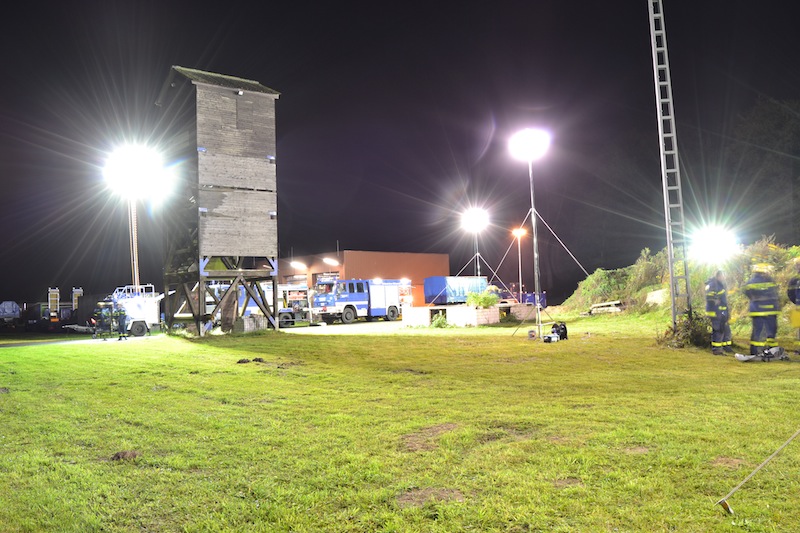 Mit Abfahrt im Ortsverband startete auch sogleich der Ausbildungsbetrieb. Denn für die Kraftfahrer und Sprechfunker stellte die Fahrt als Marschkolonne schon eine erste Herausforderung dar. Nach der Ankunft in Rotenburg wurden im Ortsverband erst einmal die Quartiere bezogen. Mit Einbruch der Nacht begann auch schon der nächste Ausbildungsabschnitt. Gruppenführer Torben Dankers erklärte den Helferinnen und Helfer den richtigen Aufbau und die Wirkungsweisen der verschiedenen Beleuchtungskomponenten wie POWERMOON® und HQI-Scheinwerfer sowie eine Geräteunterweisung für den Lichtmastanhänger und dem 50 kVA Aggregat. Zur gleichen Zeit führte der Zugtrupp eine Lageerkundung des Übungsgeländes durch. Daraus entwickelte sich zur späteren Stunde eine Übung mit dem Stichwort „Zugtruppführer im Tunnelsystem vermisst“. Hier mussten die Bergungsgruppen unter Atemschutz (AGT) in das System eindringen. Nach Erfolgreichem Abschluss gab es von unserem OV-Koch einen kleinen warmen Mitternachtssnack bevor es zur Nachtruhe über ging.
