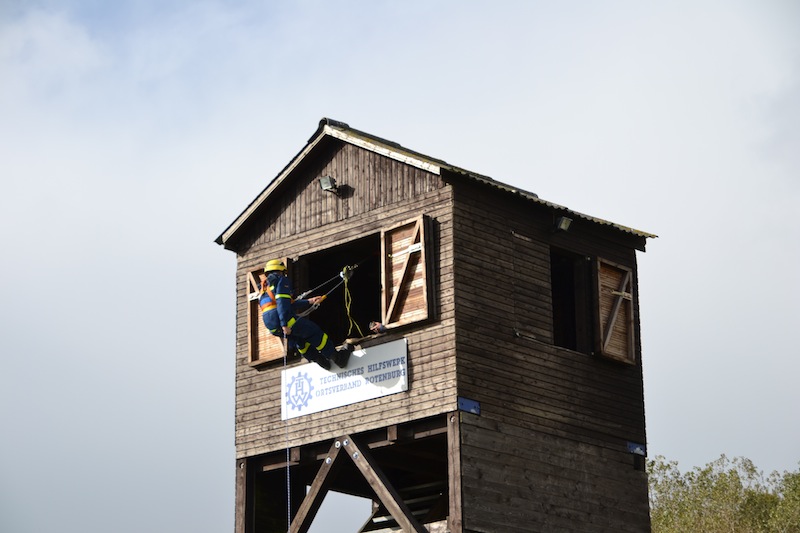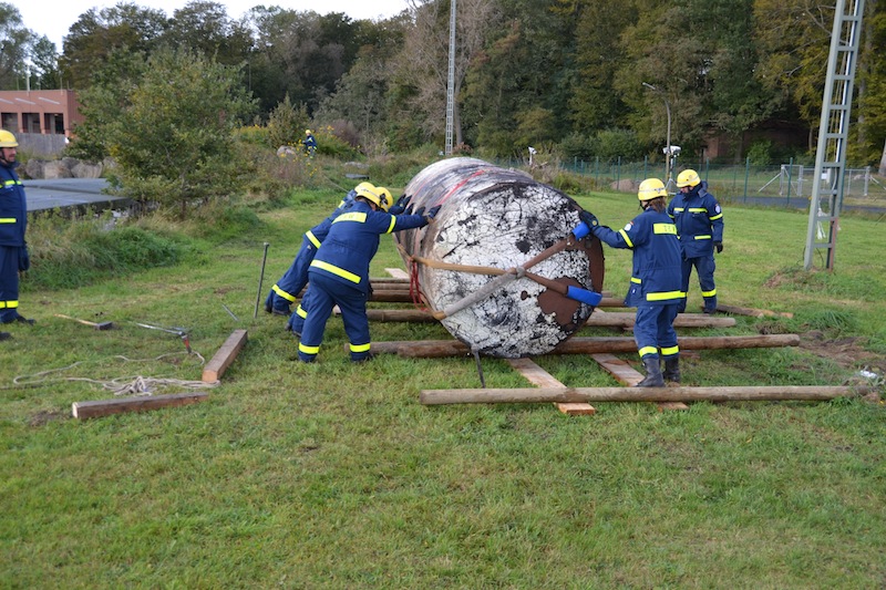 Am Samstag wurden gemischte Gruppen gebildet und gemeinsam mehrere Stationen abgearbeitet. Das Aufgleisen eines Kesselwaggons, Retten einer verletzten Person vom Waggon, Bewegen von Lasten, das Abseilen vom Übungsturm mittels Rollgliss und das Einweisen von LKWs beim Rückwärtsfahren forderten die Helfer bei teilweise regnerischen Wetter.