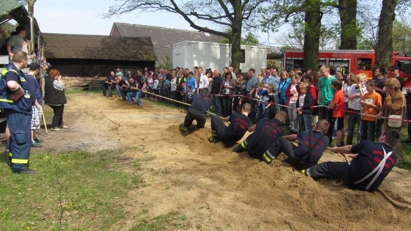 Beim alljährlichen Tag der offenen Tür der FF Fischbek wird neben einem großen Rahmenprogramm für jung und alt auch ein Wettbewerb im Tauziehen - auch Tampentrekken genannt - veranstaltet, an dem Vereine und Organisationen von nah und fern teilnehmen können. Nachdem das Team aus Buxtehude sich erfolgreich gegen die Gastgeber der FF Fischbek und der 3. Herren-Mannschaft des FC Süderelbe durchsetzte, traf man auf das Team mit dem höchsten Kampfgewicht (550 kg) im Finale. Nach spannenden Minuten gelang es dann den Kameraden aus Neuenfelde, die rote Markierung des Seils auf ihre Seite zu ziehen und somit das Finale für sich zu entscheiden. Fürs nächste Mal steht aber jetzt schon fest: „Der Pott muss nach Buxtehude!“.
