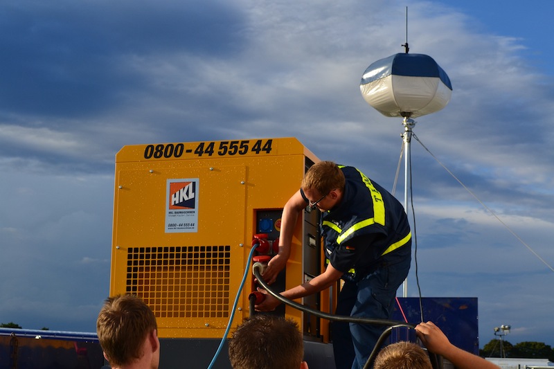 Am frühen Nachmittag begann der Aufbau der Leuchtmittel und Aggregate sowie das absperren des Sicherheitsbereiches mit Hilfe von Bauzäunen. Die erforderliche Ausleuchtung des Areals gehörte zu den Auflagen des Ordnungsamtes, damit die Gäste die Nacht hindurch sicher feiern konnten. Hierzu wurde das gesamte Material der Fachgruppe Beleuchtung, das Aggregat der 2. Bergungsgruppe und Material der 1. Bergungsgruppe sowie ein Leihaggregat welches auf dem Anhänger der 1. Bergung verlastet war genutzt. Ohne größere Zwischenfälle ging am frühen Sonntagmorgen die 15. Beachparty zu Ende.