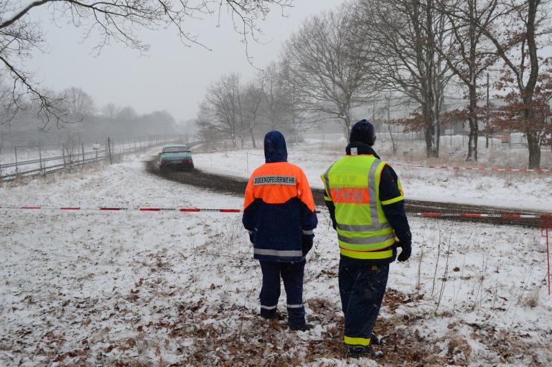 Der Ortsverband Kutenholz bat uns um personelle Unterstützung für die Absperrmaßnahmen der Rallye. Insgesamt waren wir mit acht Helfern und dem Mannschaftstransportwagen des Zugtrupps vor Ort. 41 Teilnehmer mit den unterschiedlichsten Fahrzeugen im Rallye Look vom Mini Cooper, 1-3er Golf, Opel Manta, Porsche 911 und Mitsubishi Lancer Evo nahmen an der Rallye teil. Durch den starkem Schneefall und Temperaturen unter dem Gefrierpunkt forderten die Streckenverhältnisse alles von den Fahrern ab. Der ein oder andere landete aber dennoch unfreiwillig in einem Wellblechschuppen, auf Bahnschienen oder auf einem Wasserhydranten, so dass die Nachbarortschaft Mulsum teilweise keinen Wasserdruck mehr hatte. Hier kamen die Kameraden aus Kutenholz mit ihrem Gerätekraftwagen und deren Seilwinde zum Einsatz und halfen den Verunglückten wieder auf die Strecke.