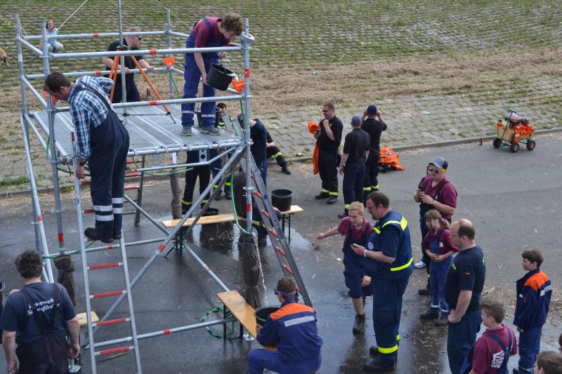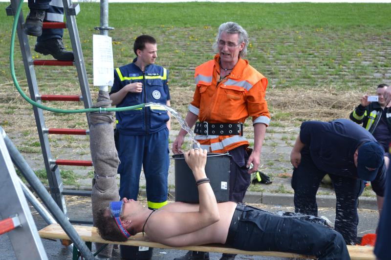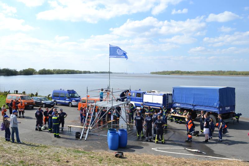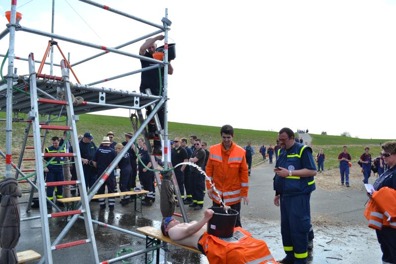 Auf dem ca. 10 Kilometer langen Lauf durch traumhafte Obstplantagen warteten wieder zahlreiche Fragen aus Allgemein- und Feuerwehrfachwissen sowie leichte sportliche Aufgaben auf die Teilnehmer. Feuerwehren aus ganz Deutschland und unsere THW Jugendgruppe aus Buxtehude nahmen an dem diesjährigen Marsch bei sommerlichen 25 Grad Celsius und Sonnenschein teil. Eine der Stationen wurde wieder durch unseren Ortsverband gestellt. Hierfür wurde mit Hilfe des Einsatzgerüstsystems (EGS) eine erhöhte Plattform gebaut, wo Wasser durch einen Trichter und Schlauch hinunter gefördert wurde. Unten musste ein Kamerad dann mit verbunden Augen und einem weiteren Eimer das Wasser aus dem Schlauch wieder auffangen. Hierbei blieb der ein oder andere nicht ganz trocken. Je mehr Wasser aufgefangen wurde, desto mehr Punkte gab es dafür. Unsere Jugendgruppe konnte leider an dem Erfolg aus dem letzten Jahr, den dritter Platz, nicht anknüpfen und schaffte es auf den 14. Platz. Aber die Kinder hatten wieder sehr viel Spaß und wollen im nächsten Jahr wieder mit an den Start gehen.