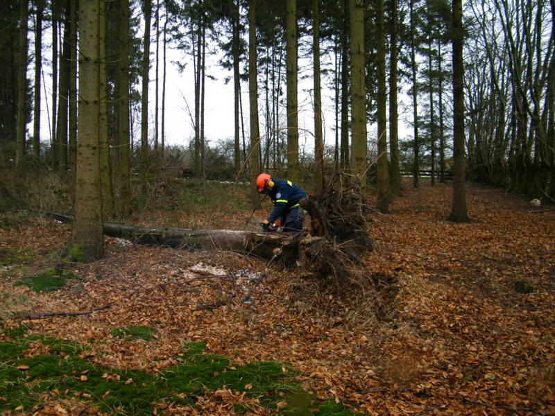 Unter Anleitung von ausgebildeten Motorsägeführern konnten auch nicht so erfahrene Helferinnen und Helfer weitere Erfahrungen im Umgang mit der Kettensäge, sicheren Schnitttechniken und fachgerechter Zerlegung von Windwurf sammeln. Ein großes Dankeschön geht auch an die Pfadfinder, die unsere Helferinnen und Helfer mit frischem Grünkohl während der Ausbildung versorgten.