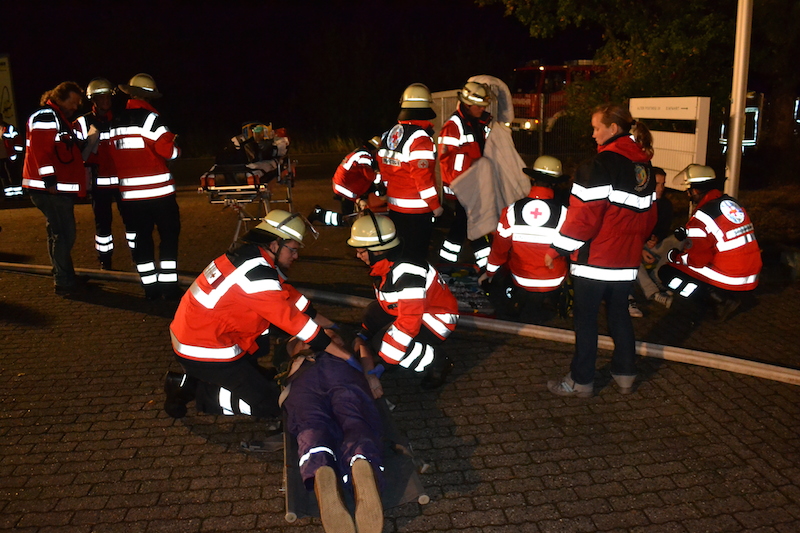 Nachdem die insgesamt 16 verletzten Personen gerettet wurden, hieß es für die 70 Einsatzkräfte am späten Freitagabend Übungsende und zurück bauen. Nach einer kurzen Besprechung aller Einsatzkräfte zog Daniel Janssen, Zugführer des Zug I der Feuerwehr Buxtehude, ein durchweg positives Resümee und kündigte für die Zukunft weitere Übungen dieser Art an, damit sich die Zusammenarbeit aller Hilfsorganisationen in Buxtehude weiter verbessern kann. Zum Abschluss gab es noch einen kleinen Imbiss welcher vom Verpflegungstrupp des DRK Einsatzzuges II Buxtehude zubereitet wurde.
