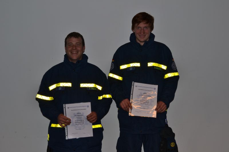 10.05.2014 – Der Ortsverband Buxtehude freut sich über zwei neue Helfer. Tobias Mann und Dominik Globuschütz sind, nachdem sie die Abschlussprüfung der Grundausbildung mit Erfolg bestanden haben, nun aktive Helfer im Technischen Zug. In mehreren Monaten erlernten sie während der Grundausbildung allgemeine Grundlagen zum Umgang mit Geräten, Sicherheitsmaßnahmen und Wissen über die Struktur und den Aufbau der Bundesanstalt Technischen Hilfswerk.