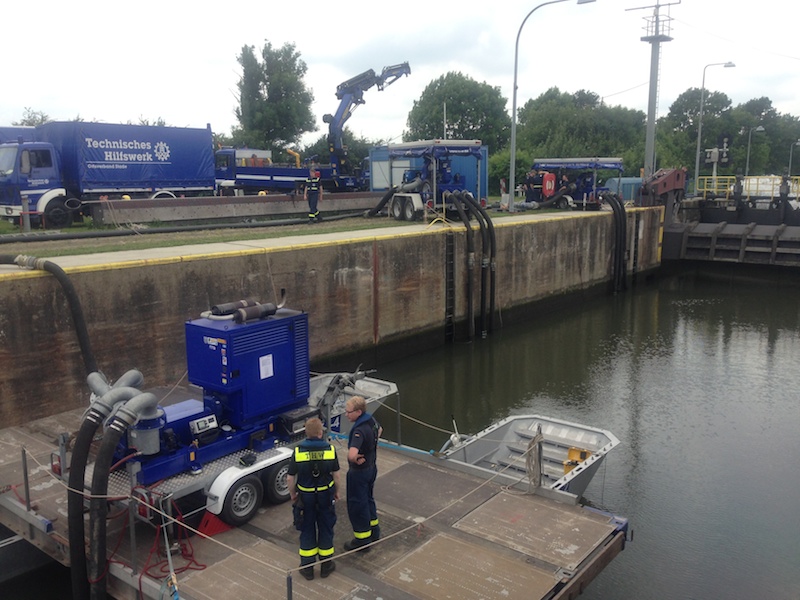 27.06.2014 - Um den Bereitstellungsraum 500 (BR 500) in Bruchhausen-Vilsen mit Leben zu füllen, wurde das Ausbildungswochenende des High Capacity Pumping-Moduls (HCP) aus dem Landesverband Bremen und Niedersachsen dorthin verlegt. Aufgabenschwerpunkte waren die Einrichtung einer Wasserentnahmestelle für die Feuerwehr im Hafen von Hoya und die Simulation eines behelfsmäßigen Betriebes der Schiffsschleuse auf der Weser in Dörverden. Der Buxtehuder Helfer Benjamin Grabow nahm aus unserem Ortsverband an dieser Veranstaltung teil.