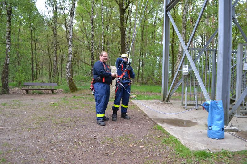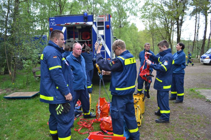 09.05.2015 – Auf dem Ausbildungsdienst im Mai mussten unsere Helfer/innen ihre Schwindelfreiheit unter Beweis stellen. Vom Aussichtsturm am Litberg in Sauensiek seilten sich die wagemutigen Helfer/innen aus über 25 Meter in Richtung Boden ab. Zudem erhielten unsere Motorsägenbediener ihre jährliche Unterweisung.