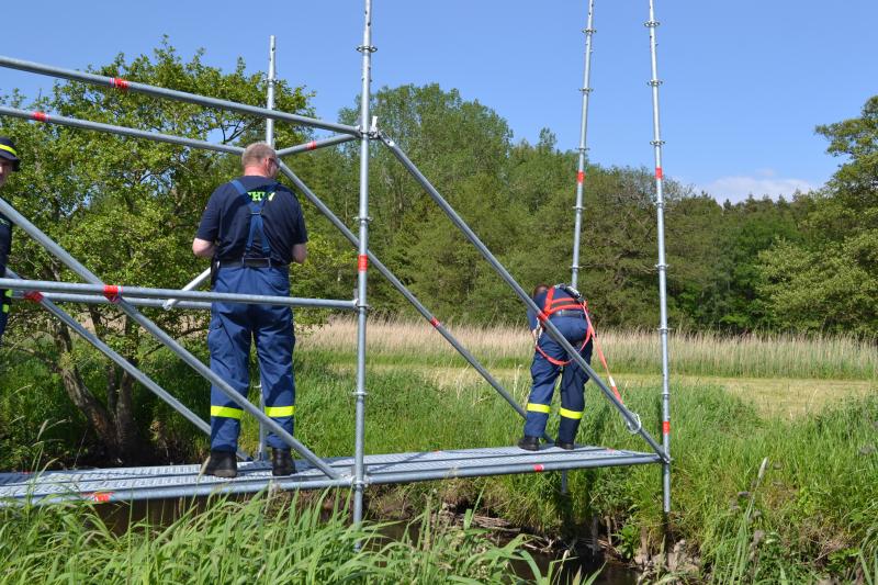 06.06.15 – Nachdem das Hochdruckgebiet „Xenia“ uns in den letzten Tagen die ersten heißen Sommertage bescherte, ging es für unsere Helfer/innen auf dem Juni-Dienst an die Este, wo der ein oder andere sich eine Abkühlung abholen konnte. Aber auch die Ausbildung kam nicht zu kurz. Mit Hilfe des Einsatz-Gerüstsystems (EGS) wurde eine kleine Brücke über die Este gebaut.