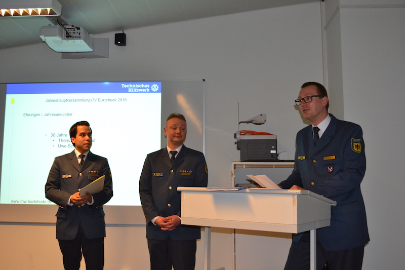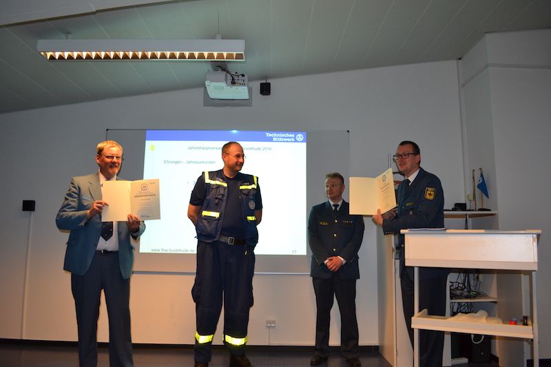 Durch den Referatsleiter Einsatz und stellvertretenden Landesbeauftragten für Bremen, Niedersachsen, Michael Matrian, wurde Michael Dranicki zum neuen Verwaltungsbeauftragten berufen. Thomas Haberland und Uwe Schröter wurden für ihre 30-jährige Mitgliedschaft im THW geehrt.